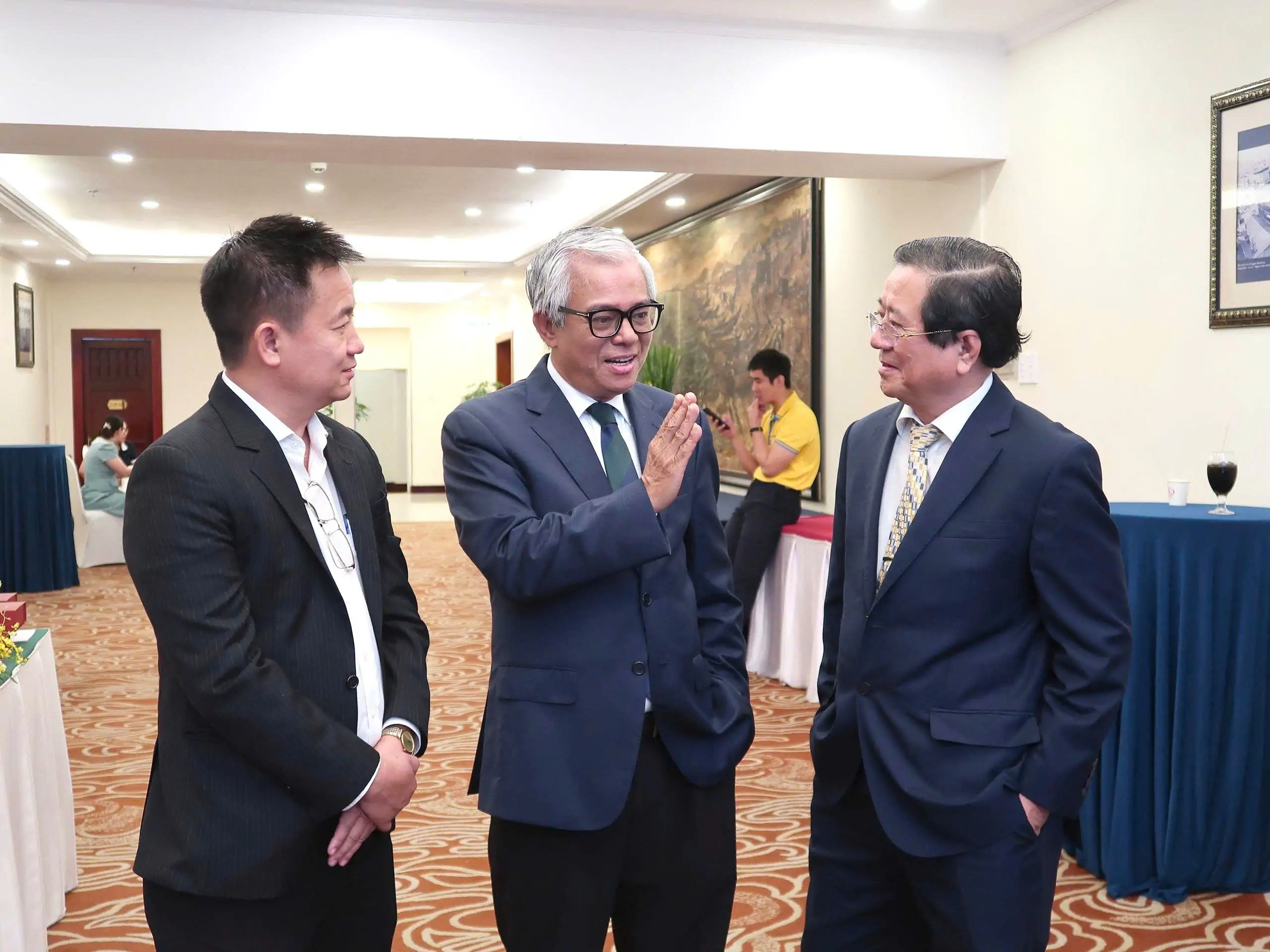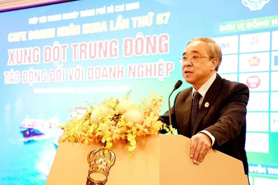 Ông Phạm Quang Vinh (đứng giữa), nguyên Thứ trưởng Bộ Ngoại giao, nguyên Đại sứ đặc mệnh toàn quyền Việt Nam tại Hoa Kỳ đã nói về những khó khăn của doanh nghiệp, do chiến sự tại Trung Đông.
